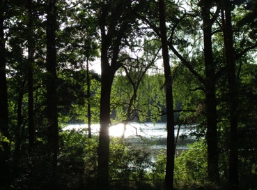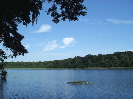 Direkt auf dem Steg am See oder unter großen alten Eichen auf der Waldlichtung des Inselchens.